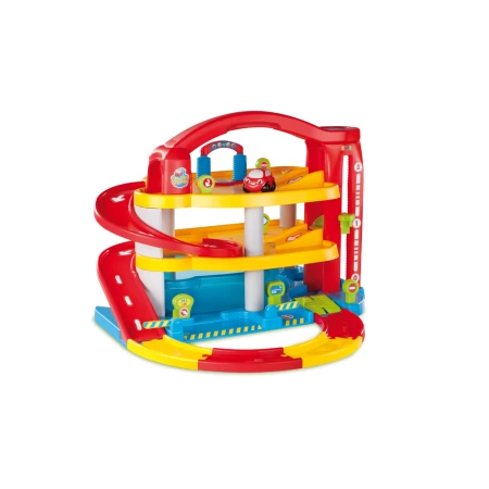 Grand garage Vroom Planet SMOBY Mini Bolides : 3 niveaux (2 étages), très complet et résistant.