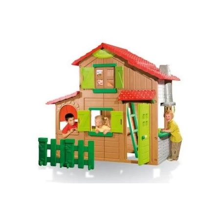 Les parents vont être jaloux ! Avec ses fenêtres, sa porte, son coin cuisine et sa chambre située à l’étage, cette maisonnette n’a rien à envier aux plus grandes. Les enfants s’inventent des histoires, organisent des goûters et prennent très vite possession des lieux. Une maison résistante, facile à monter et sécurisée avec des détails étonnants (sonnette, barbecue, tabourets). Quoi de plus amusant ?